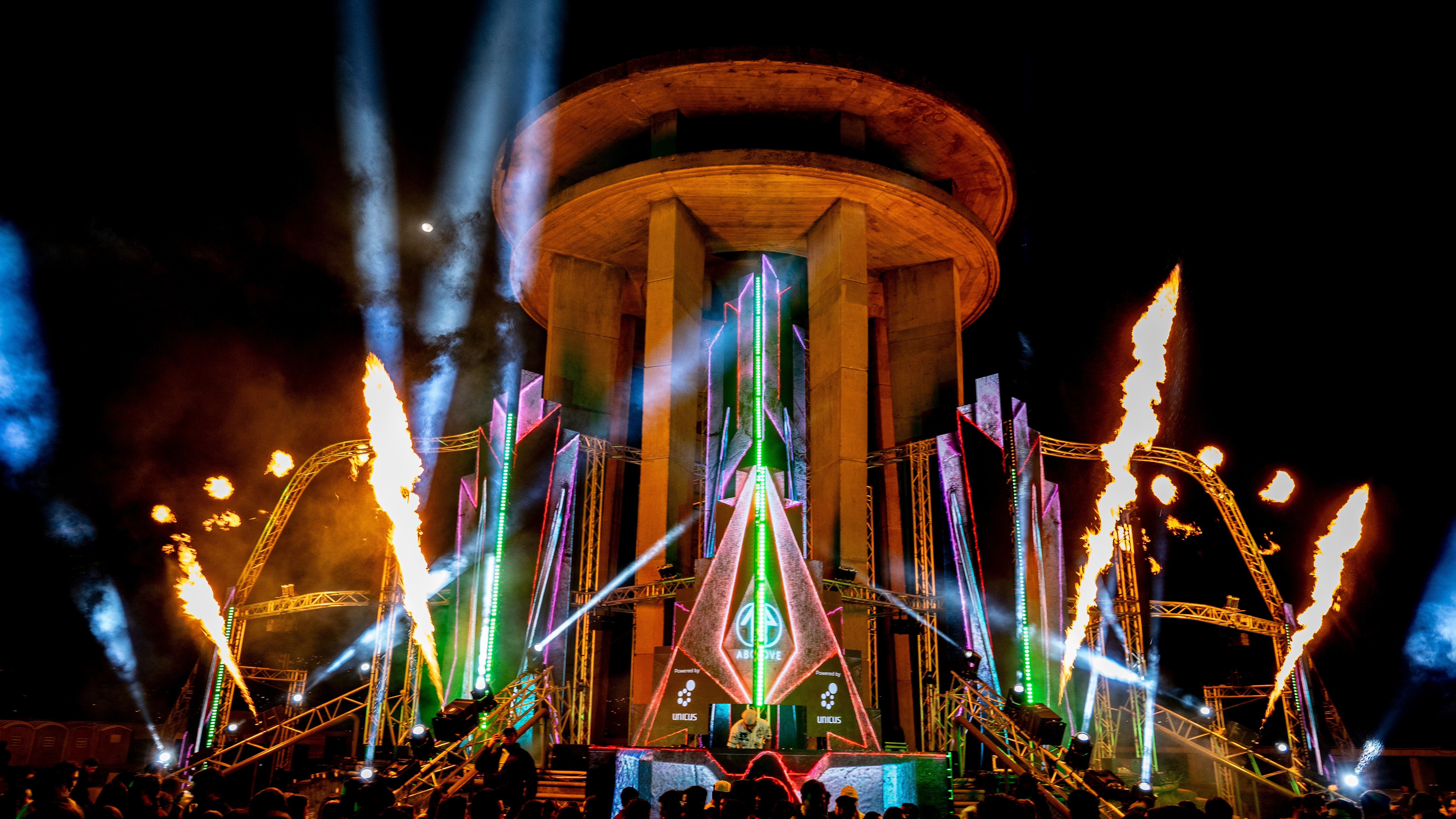 An integrated stage design within the Monumento a la Paz in the city of Tegucigalpa. with a synchronized show of audio, video, lighting, special effects, lasers and pyrotechnics. A show that evolves every year and creates emotions in the public who attended the party.